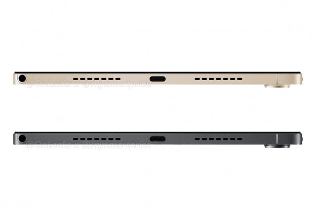 Yukarıda ilk paylaştığım fotoğraf grubunda göreceğiniz üzere, Realme Pad bizi altın ve siyah renklerle karşılıyor. Tabletin başka bir renk seçeneği görünmüyor, olursa ileride bilgi alırız zaten. Tabletin kasası, alüminyum gövdeden üretilecek ve bunun yanında, ürünün alt bölümünde bir kalem yuvası da göreceğiz. Kalem yuvasına ek olarak USB-C bağlantı noktası ve hoparlör ızgarası da, cihazın alt bölümünde yer almakta.